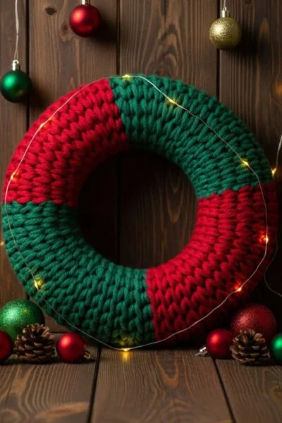 The simplest way to create a full, festive wreath is by crocheting a cover for a pre-purchased form using basic Half Double Crochet (HDC) stitches.